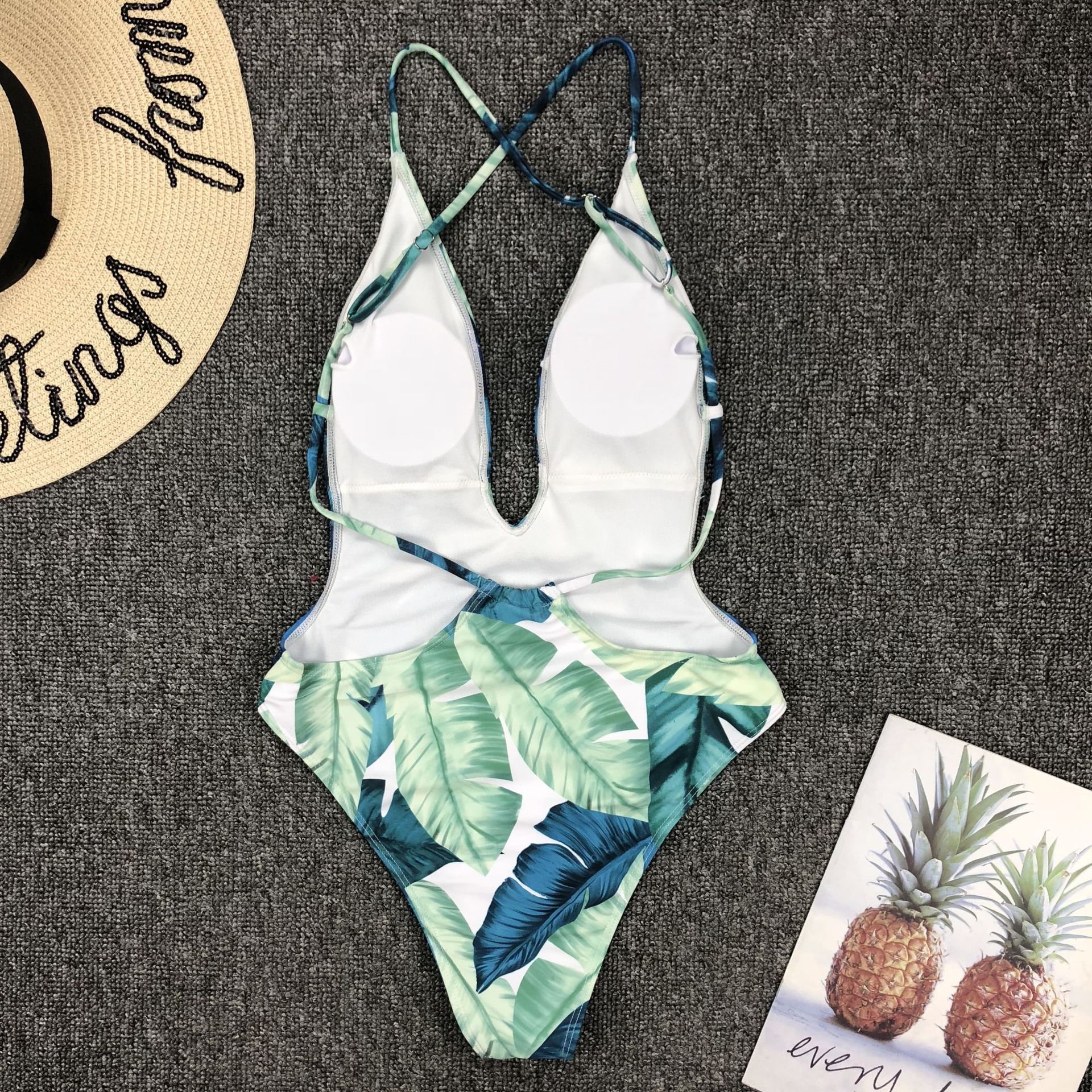 Leaf Print Sexy One-Piece Bikini Swimsuit