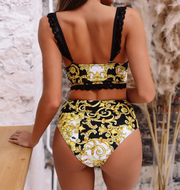 Printed Long Sleeves Three-Piece Bikini Swimsuit Underwear