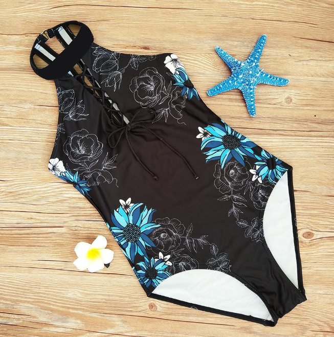 Floral Hollow One Piece Swimsuit Swimwear Lace