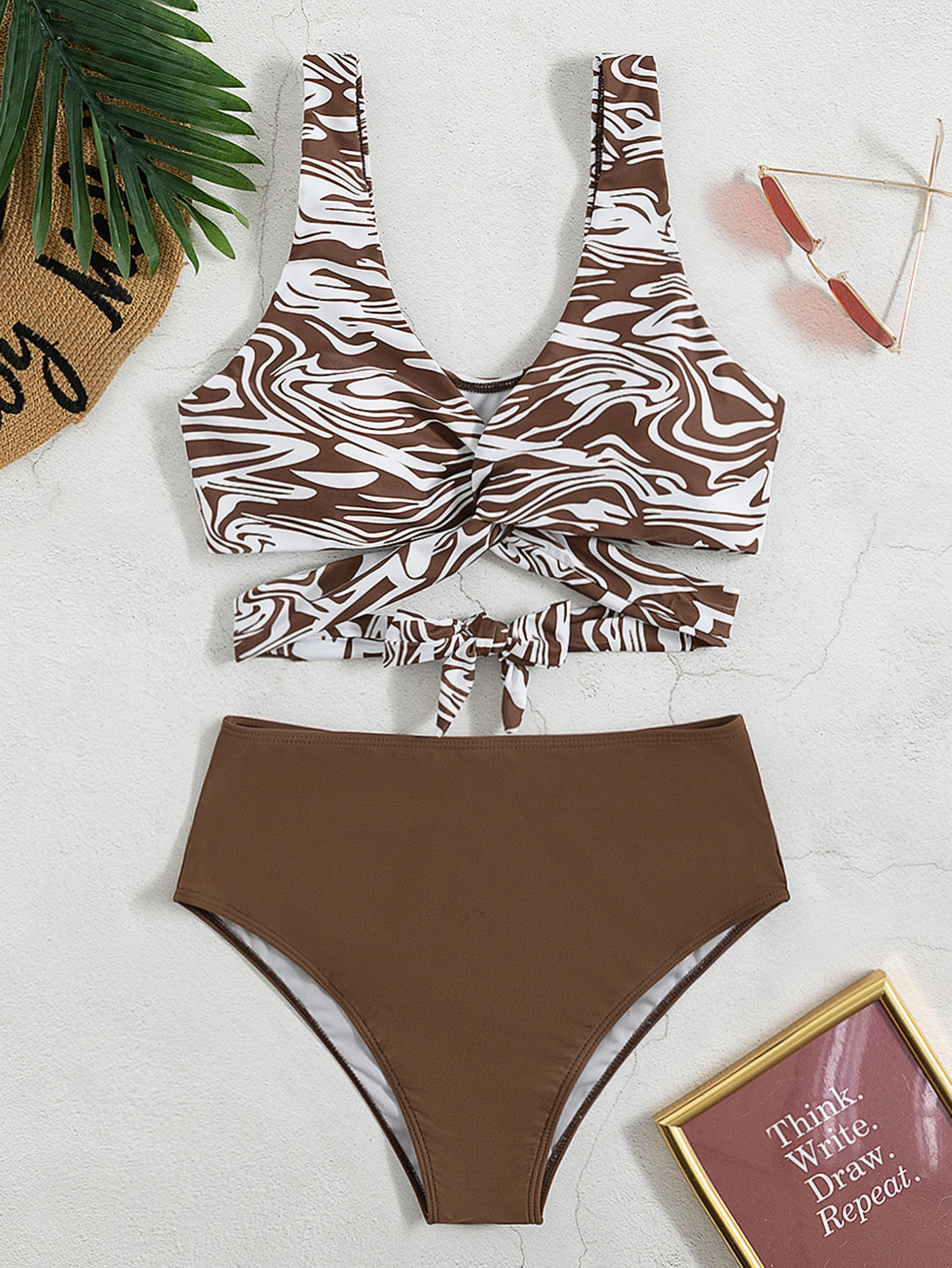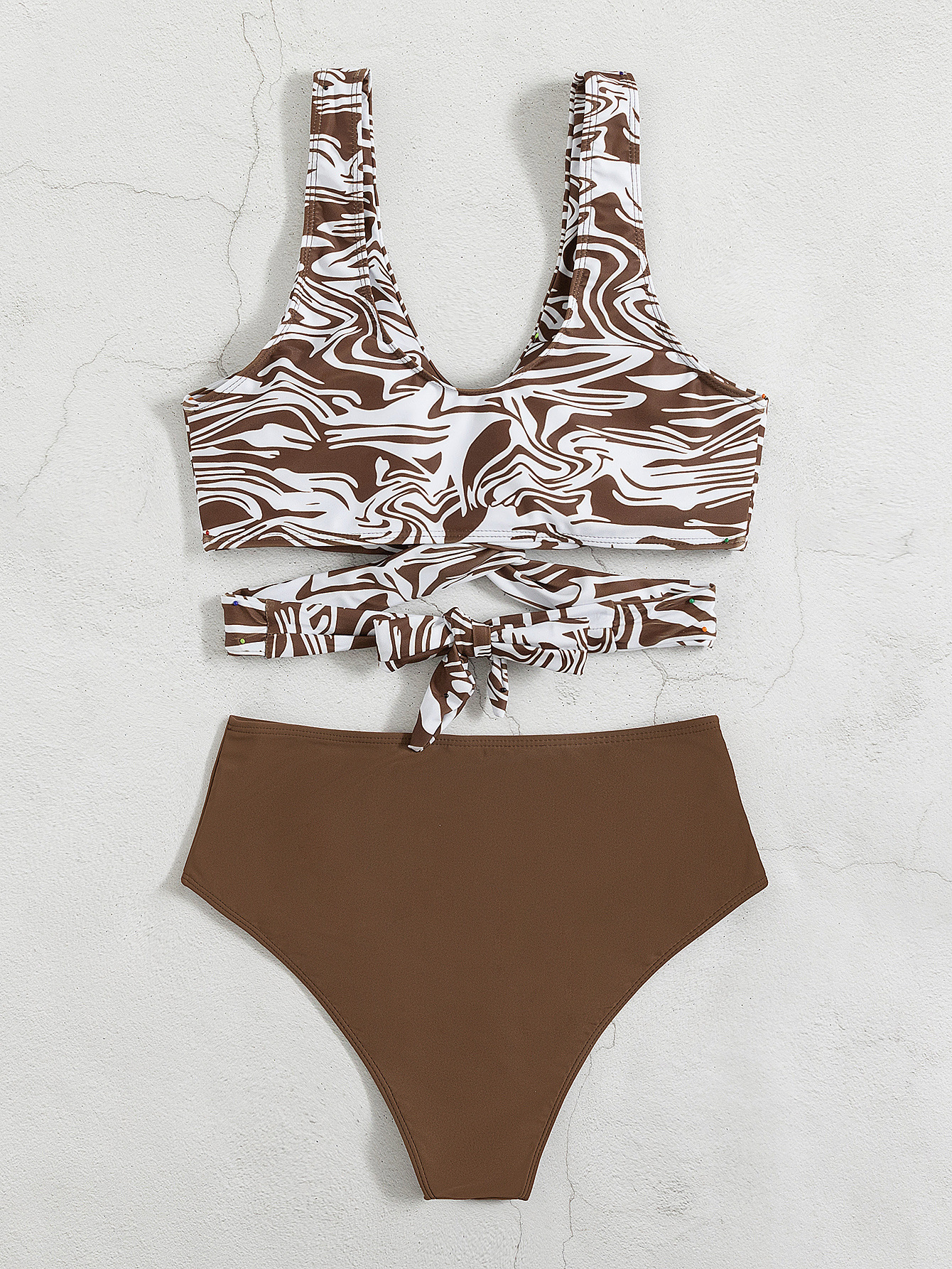 Sexy Solid Color Split High Waist Stretch Bikini Swimsuit