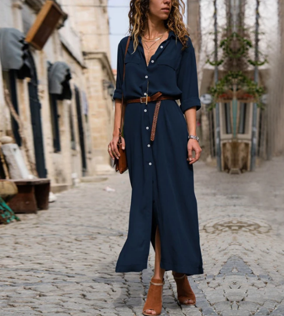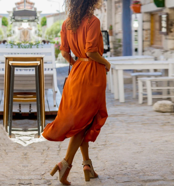 Material: Polyester Gender: Women Item Type:Dress Sleeve Length:Long Sleeve Color: Dark Blue,Army Green, Orange Size: S, M, L, XL