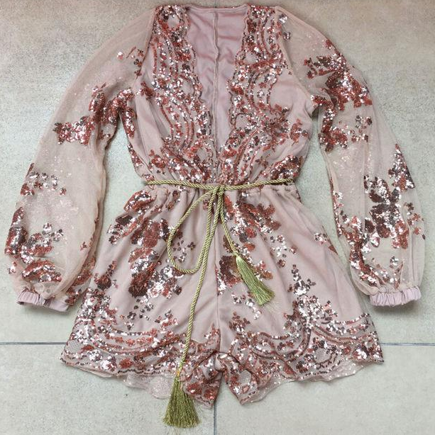 Design Sequin Deep V-Neck Romper Jumpsuit