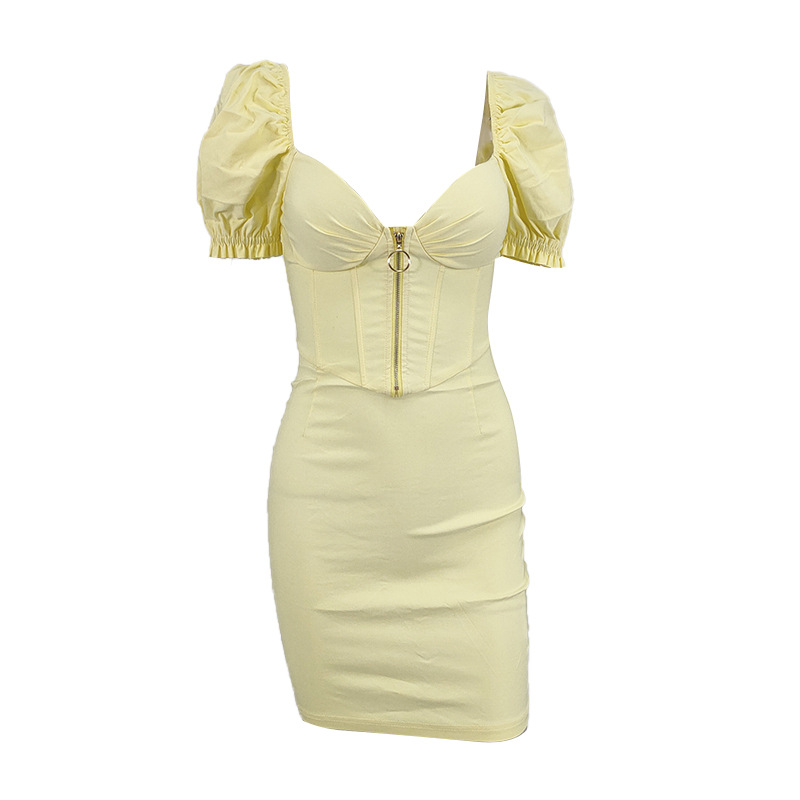 Women'S Sexy Fashion Zipper Short Sleeve Hip Dress