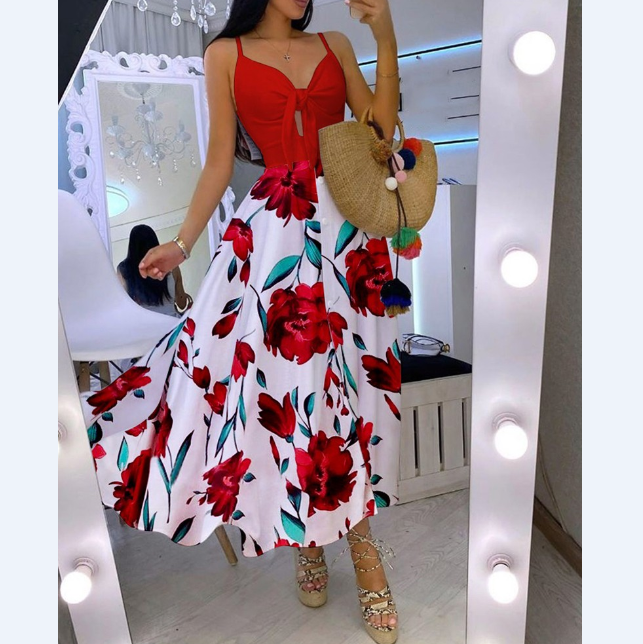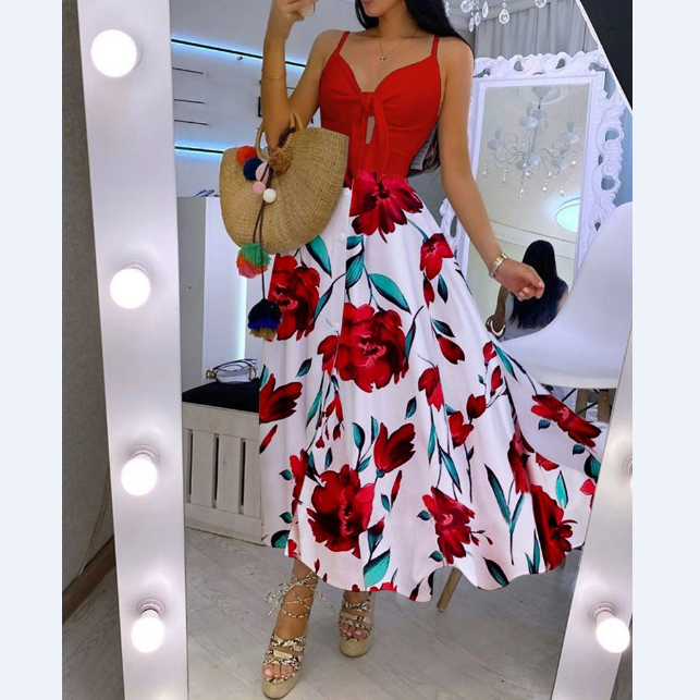 Sexy High Waist V-Neck Print Ruffled Strap Dress
