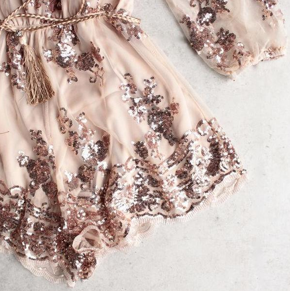 Reverse - Life Of The Party Strapless Sequin Romper - Rose Gold