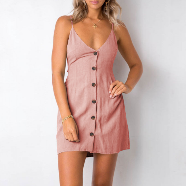 Irregular Button Sexy Short Sleeve Dress