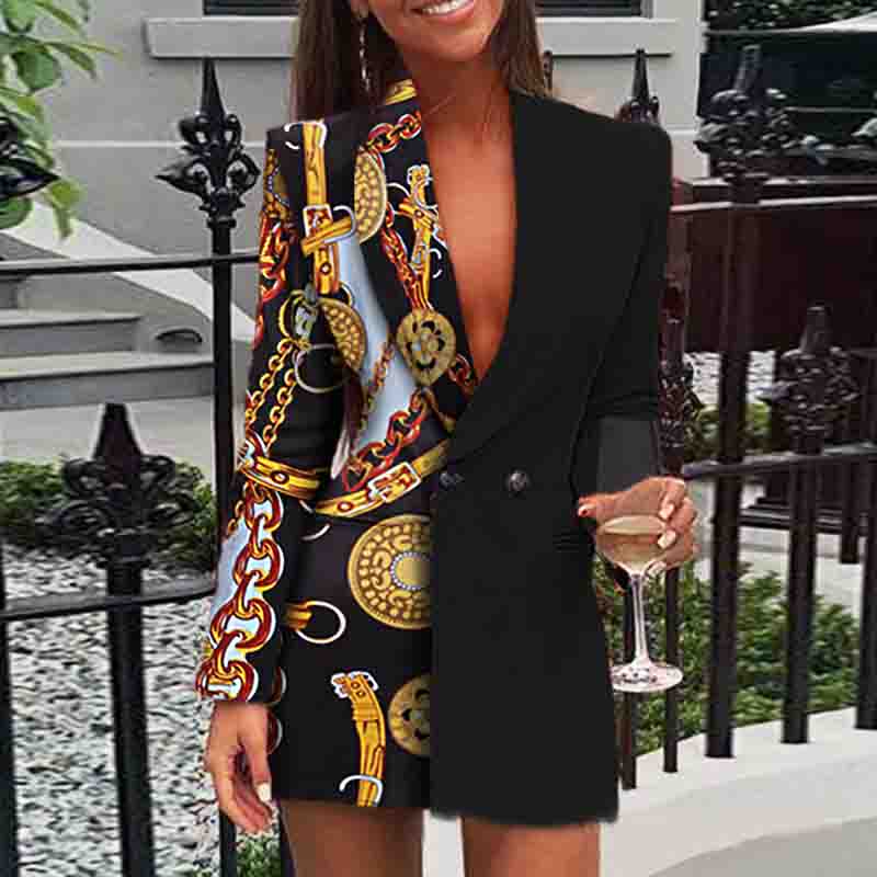 Design Print Sexy Long Sleeve Dress