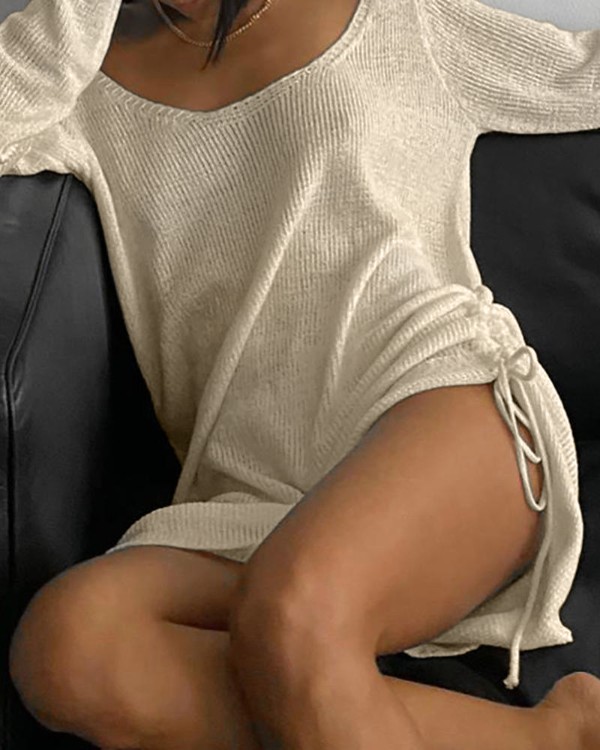 Drawstring Ruched Backless Dress