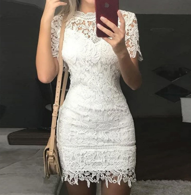 Women Round Neck Short Sleeve Hip Dress