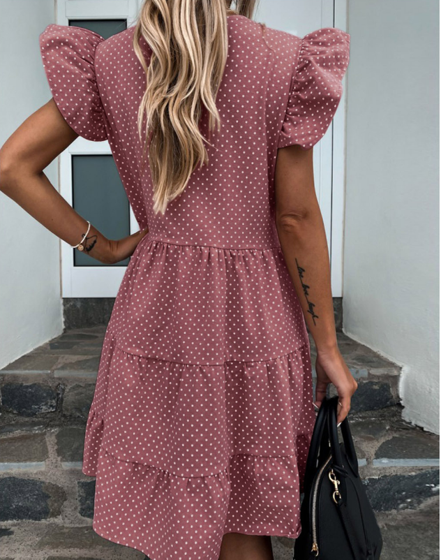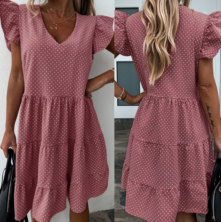 V-Neck Sweet Flounced Chiffon Cake Dress