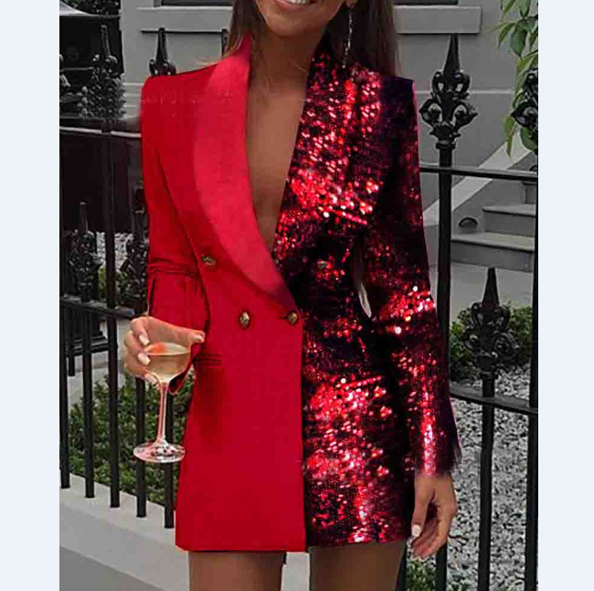 Pure Color Sequins Splicing Slim Sleeveless Dress