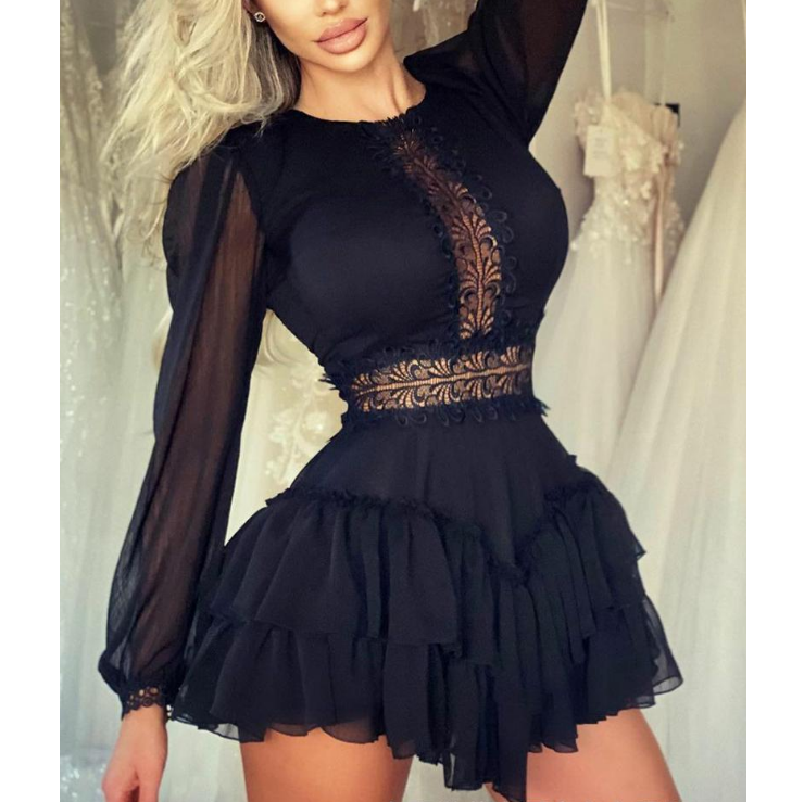 Fashion Sexy Stitching Lace Flounced Dress