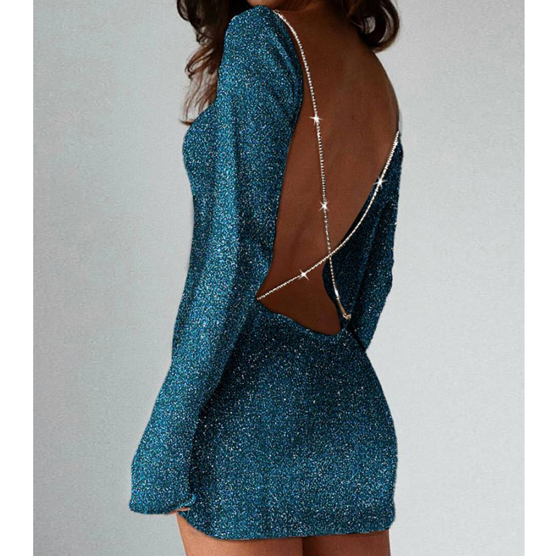 Sexy Backless Long Sleeves Knitted Solid Color Dress