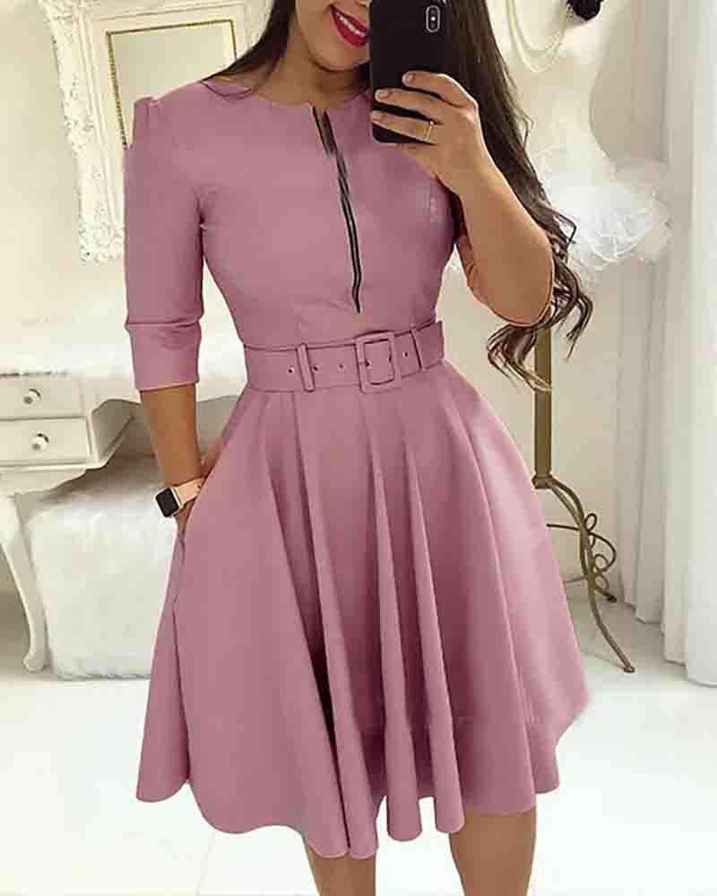Material: Polyester Gender: Women Item Type:Dress Color: Pink, Wine Red, Purple, Light Blue Size: S,M,L,XL