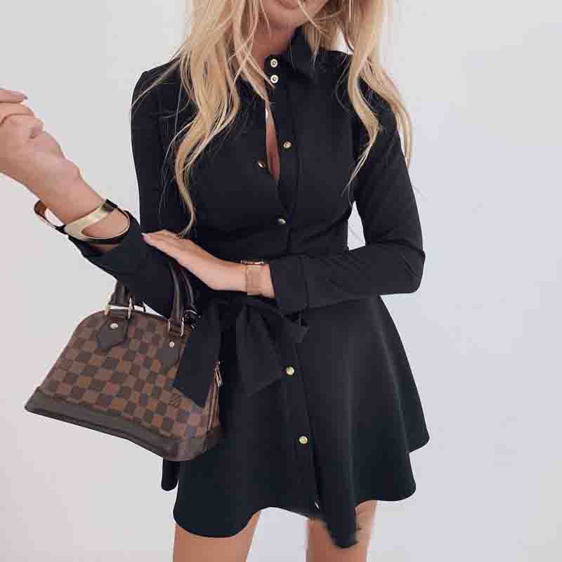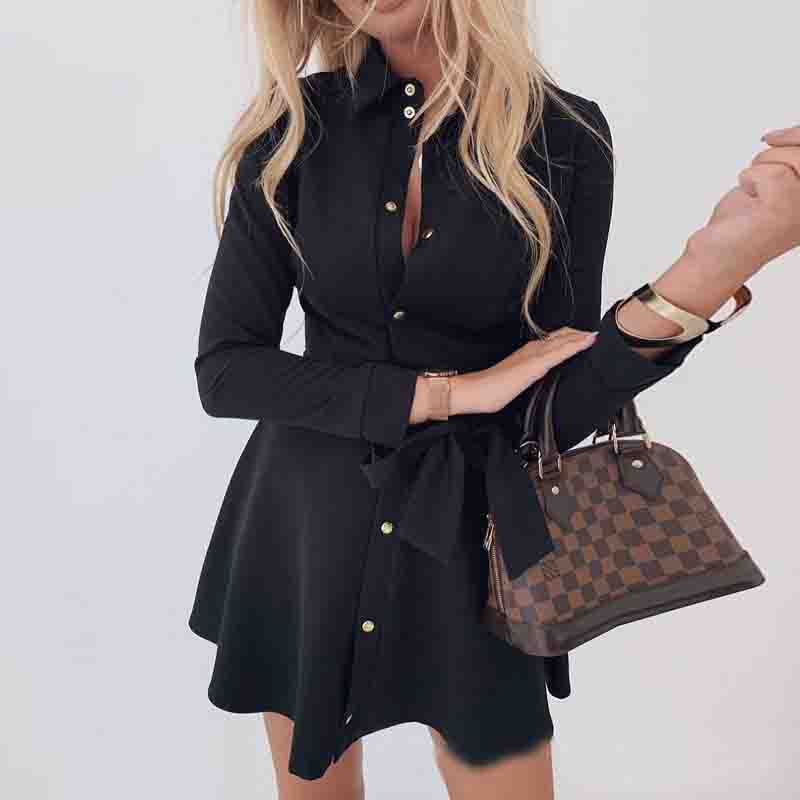 Fashion Long Sleeve Button Dress