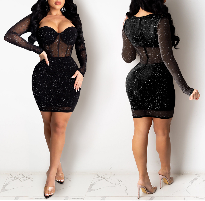 Material: Polyester Gender: Women Item Type:Dress Color: Black, Apricot Size: S,M,L,XL,XXL