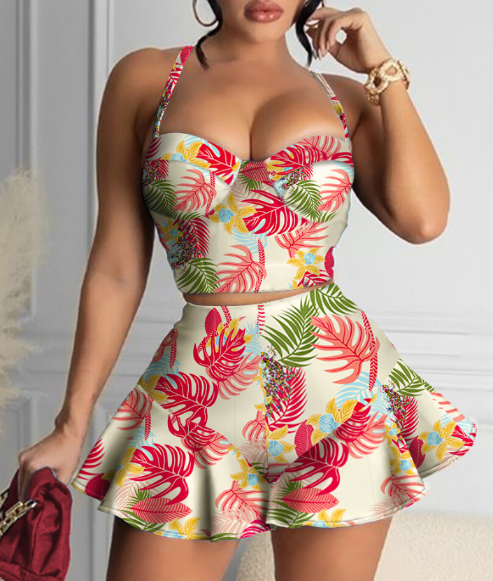 Material: Polyester Gender: Women Item Type:Two-piece Sleeve Length: Sleeveless Color: Photo Color Size: S,M,L,XL
