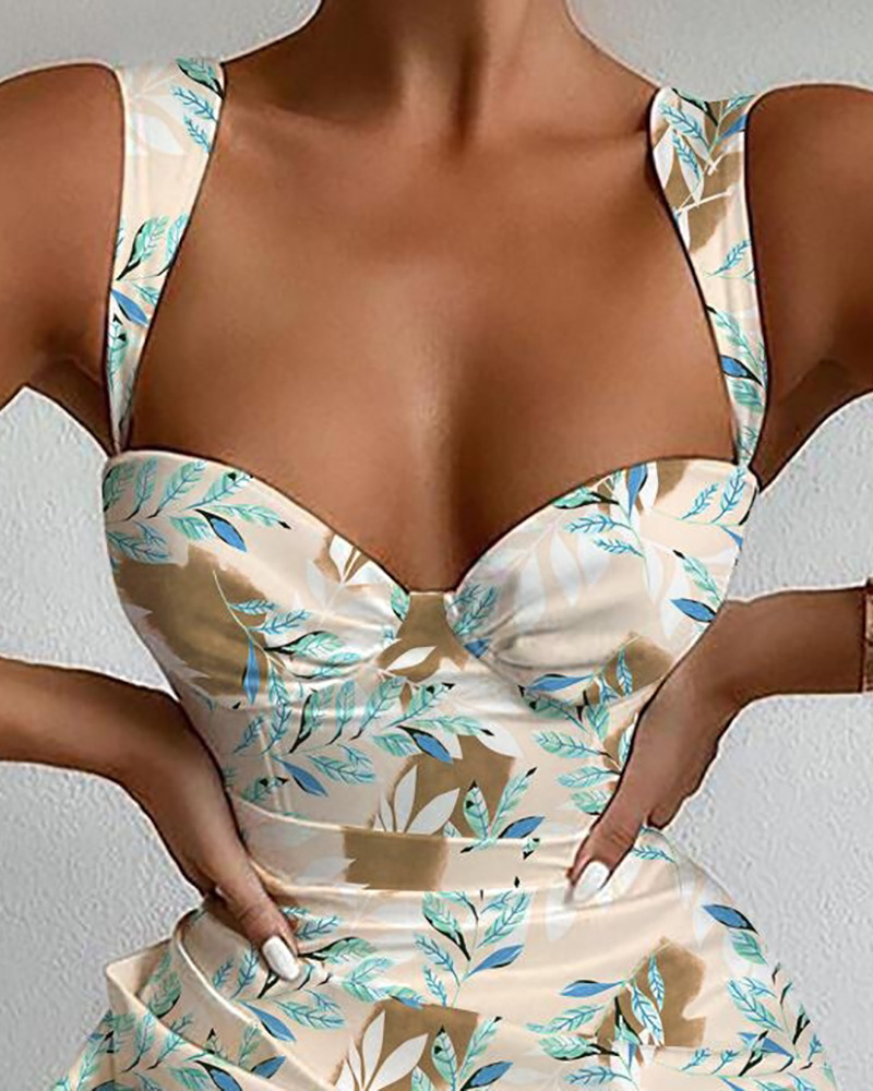 Slim V-Neck Printed Off-The-Shoulder Ruffled Fashion Dress
