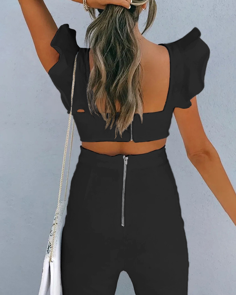 Solid Color Sexy Sleeveless Backless Hips Two-Piece Suit
