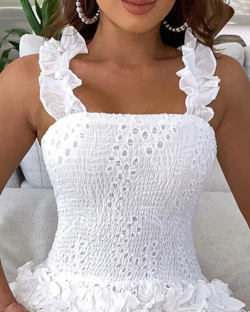 White Solid Color Lace Sling Sleeveless Dress