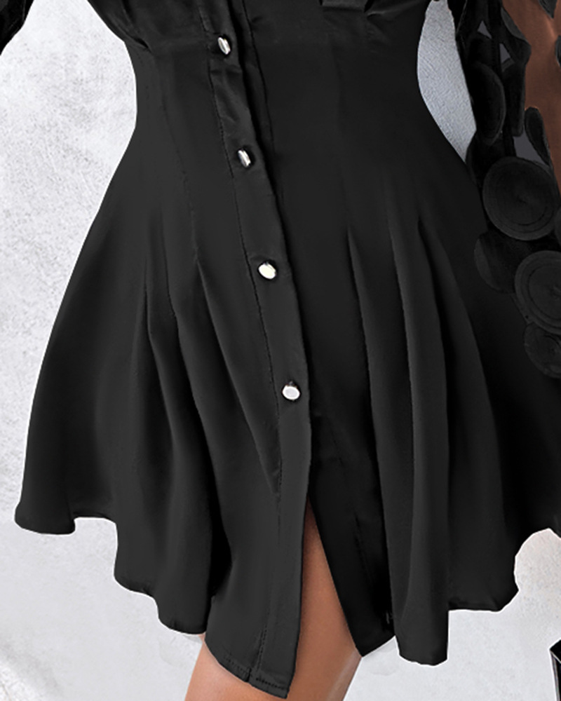 Elegant Mesh Splicing Long Sleeves Black Dress