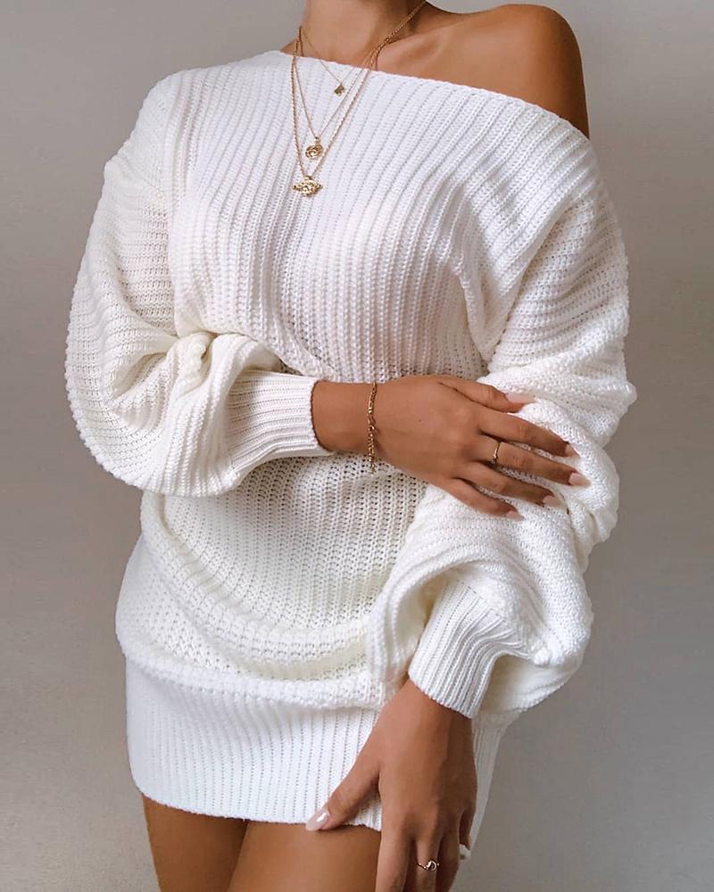 Casual Women'S Off-Shoulder Knitted Sweater Dress