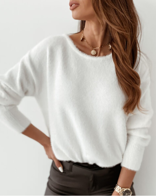 Fluffy Plain Cutout Back Tie Detail Pullover