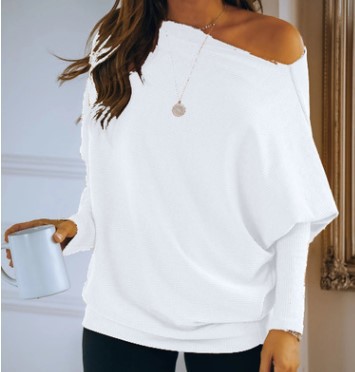 Women'S Casual White Long Sleeved Sweater
