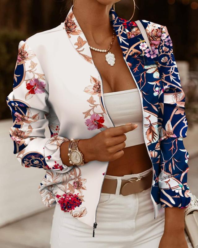 Printed Long-Sleeved Cardigan Zipper Jacket