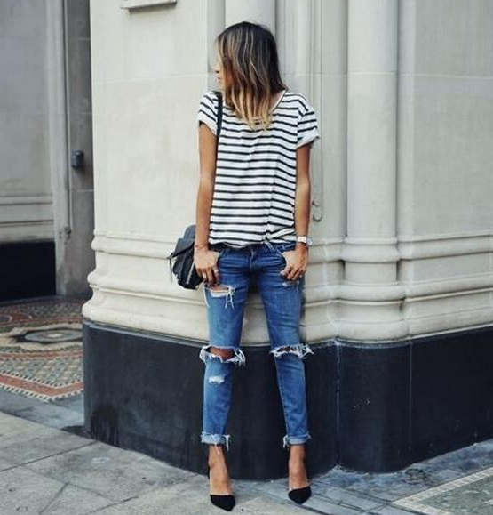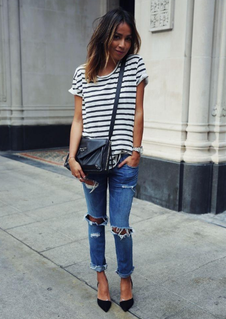 Long Sleeved Pit Stripe Patchwork Chiffon Tight Top