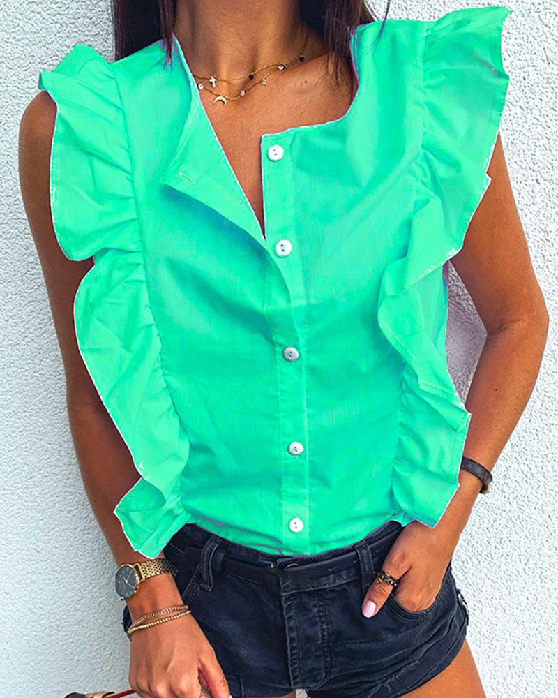 Ruffled Round Neck Sleeveless Shirt Top