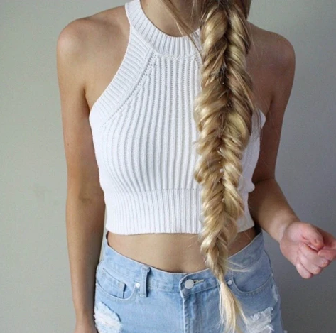 Material: Knitting Item Type:Tops Color: White, Black Size: S, M Size Chart: (CM) S: Bust 64-82, Length 45 M: Bust 68-86, Length 45