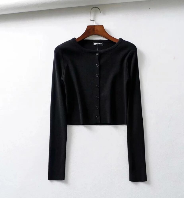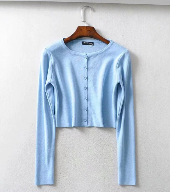 Casual Knitted Long Sleeve Short Shirt Top