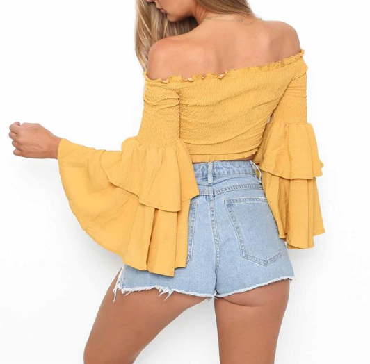 Sexy Strapless Long Sleeves Blouse Shirt Top