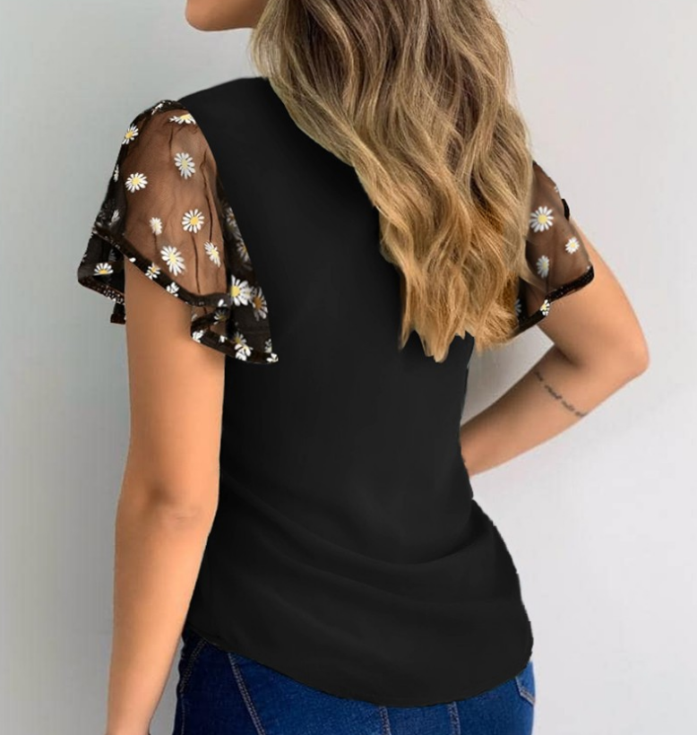 Sweet Lace Embroidered Short-Sleeved Shirt
