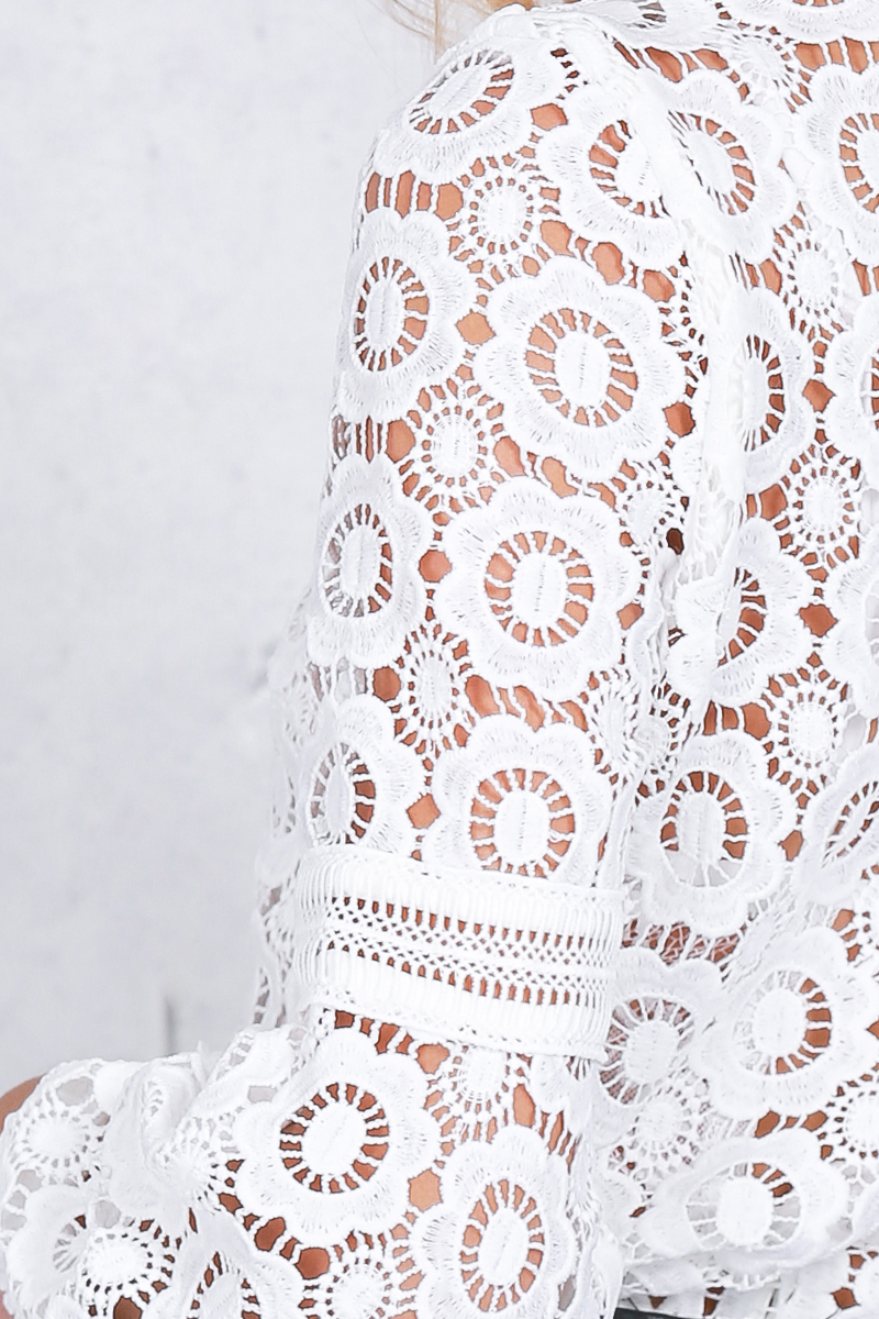 Lace Appliqued Mock Neck Long Sleeved Shirt