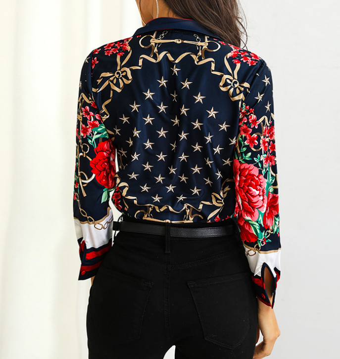 Casual Chiffon Printed Long Sleeve V-Neck Shirt Top