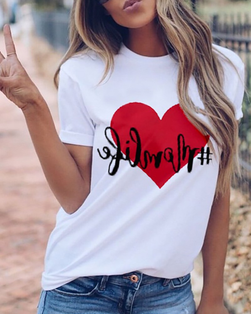 Short Sleeve Women'S Round Neck Letter Printed T-Shirt