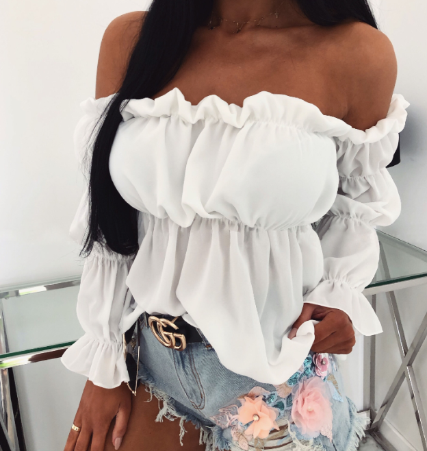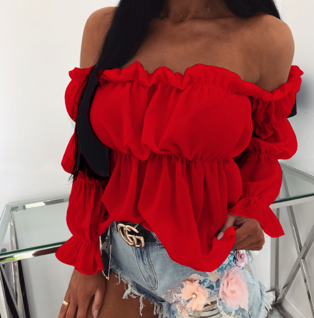 Red Off-The-Shoulder Sexy Long-Sleeved Top