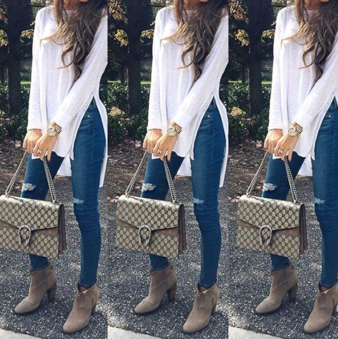 Women White Long T-Shirts Spring Autumn Irregular Side Slit Top