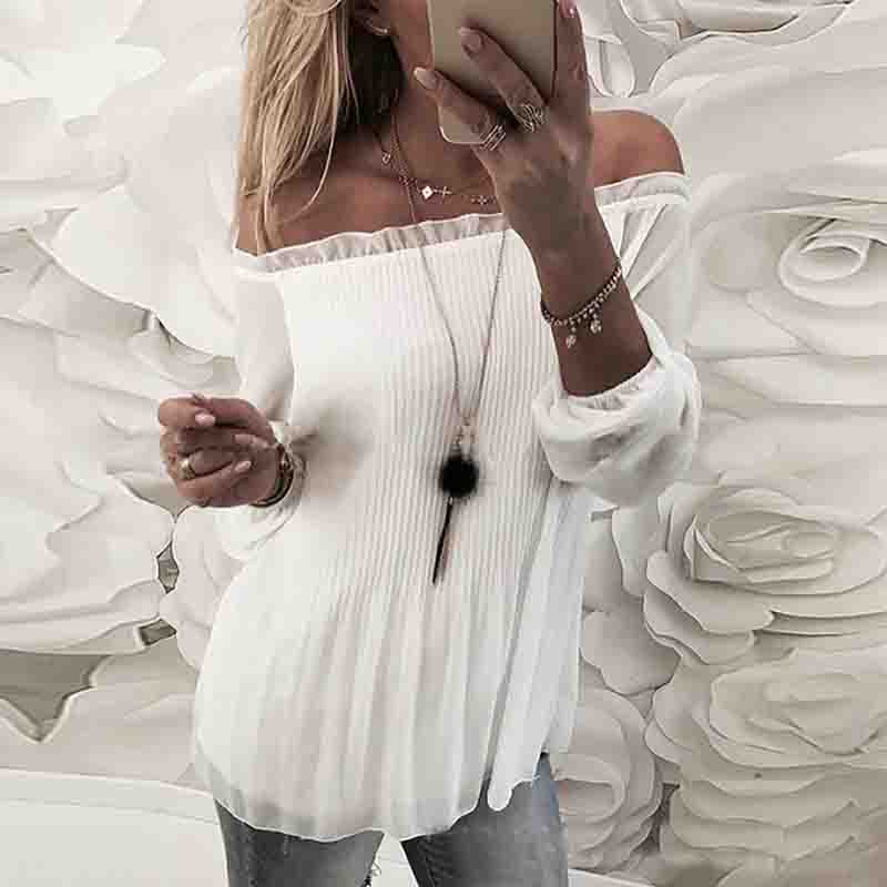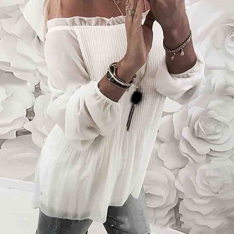 Long Sleeve White One-Shoulder Shirt