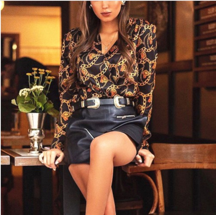 Deep V Chain Printing Fashion Sexy Shirt