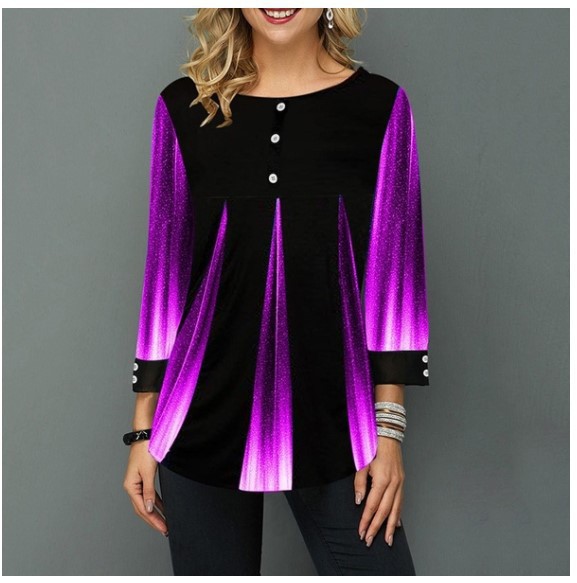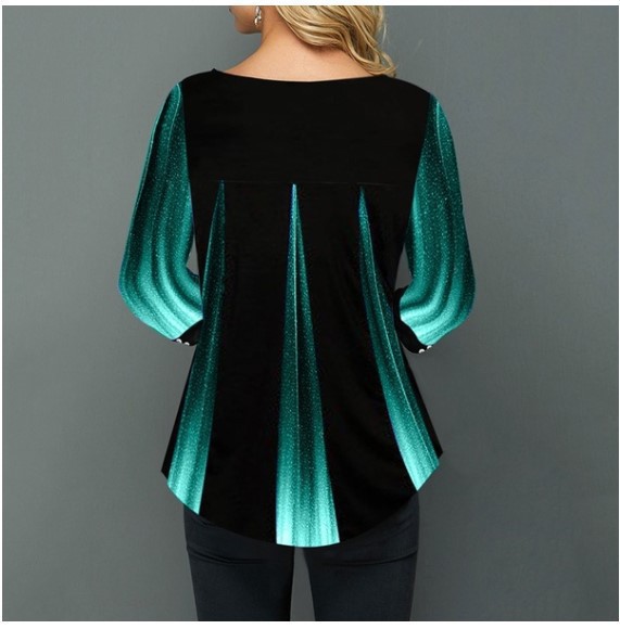 Gradient Button Detail Printed Round Neck T Shirt