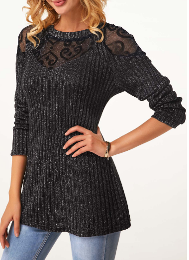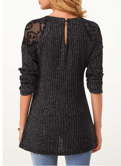 Keyhole Back Round Neck Long Sleeve T Shirt