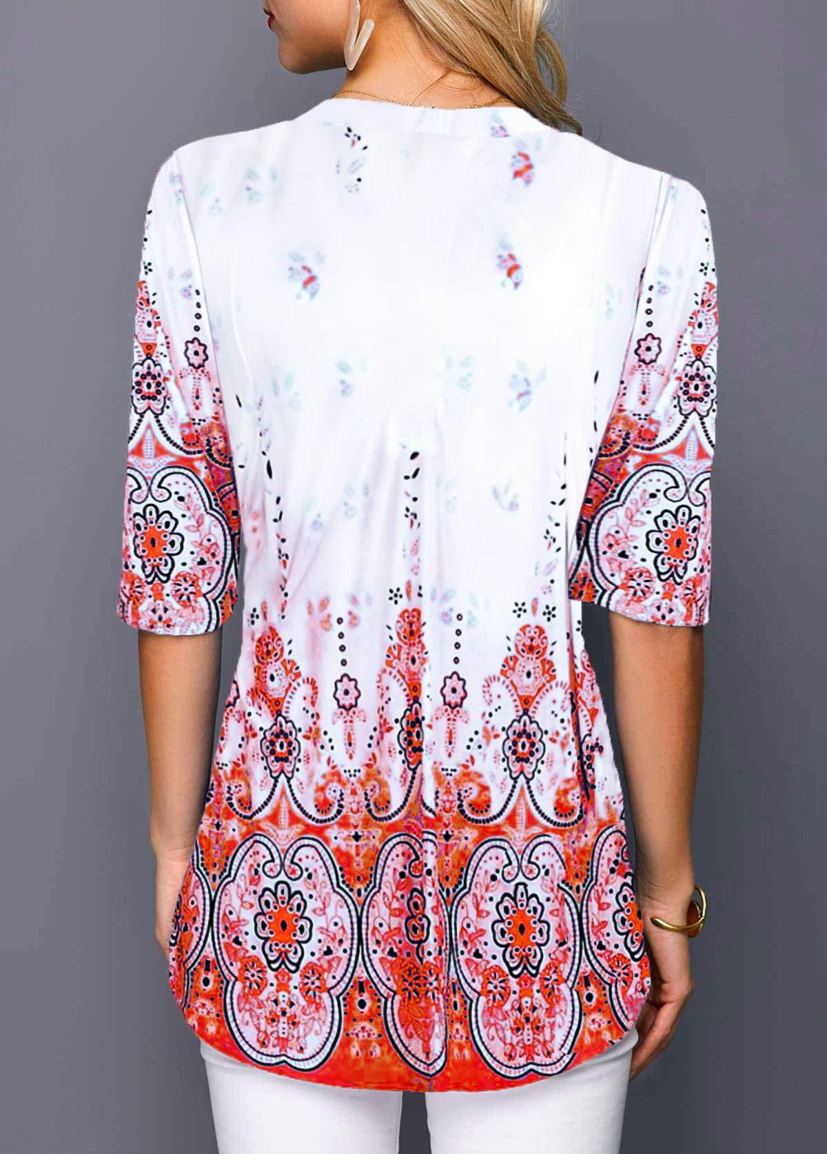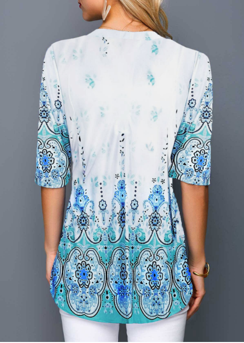 Printed Short Sleeve Bow Puff Sleeve Shirt