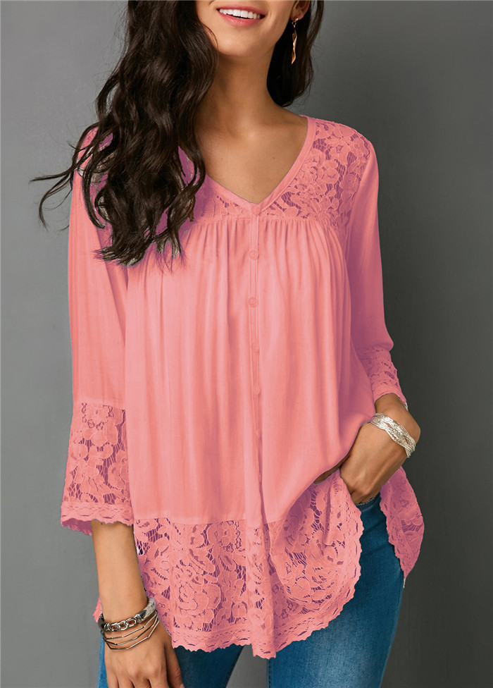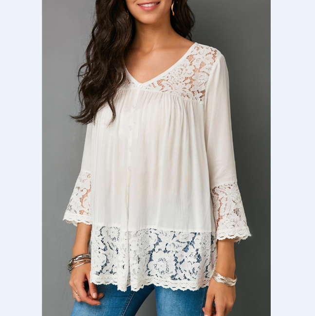Christmas Print Flare Cuff Crinkle Chest Blouse