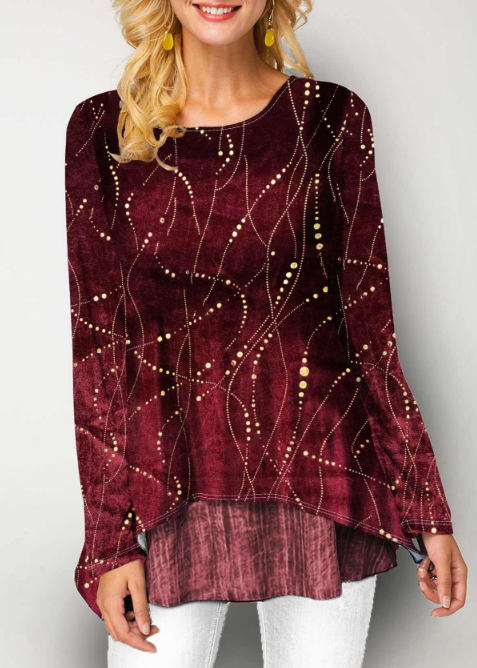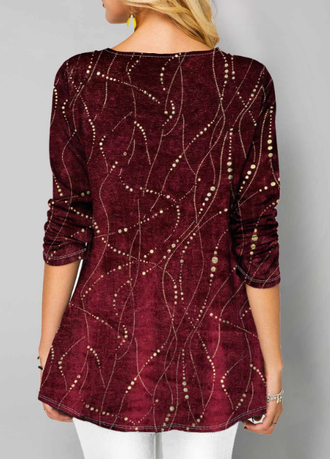 Keyhole Back Round Neck Long Sleeve T Shirt