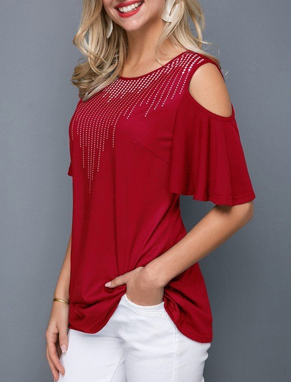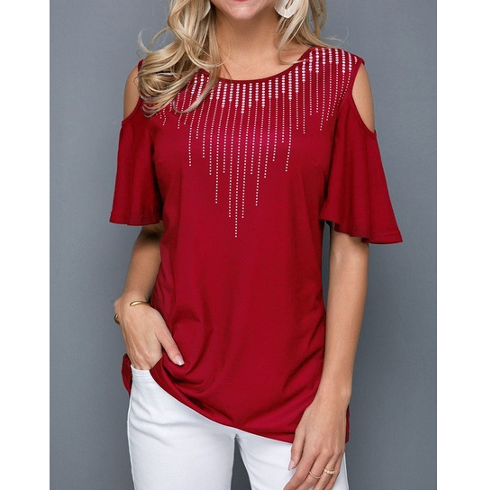Polka Dot Short Sleeve Lace Patchwork Blouse