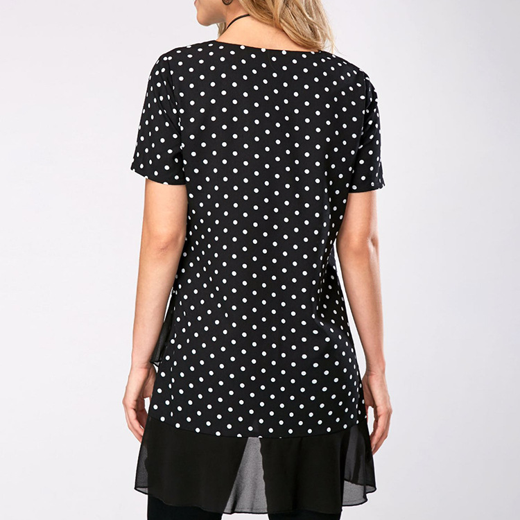 Asymmetric Hem Polka Dot Print Short Sleeve Blouse
