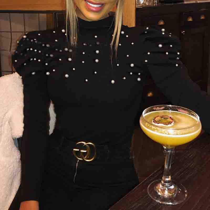 Fashion Ladies Beaded Bubble Long Sleeve Top